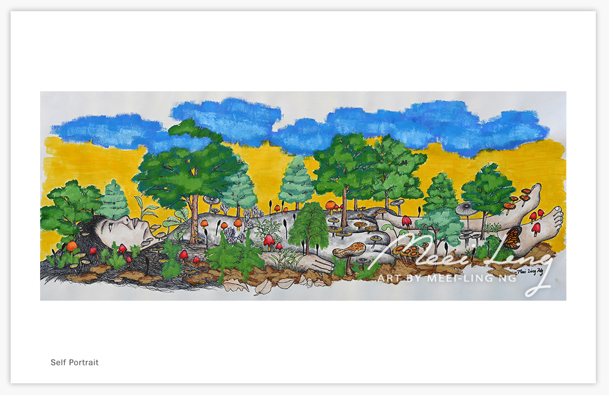 The original art piece is available upon request. Artwork size: 67.5" x 42" inches. Medium: Ink drawing and acrylic painting on thick paper.
